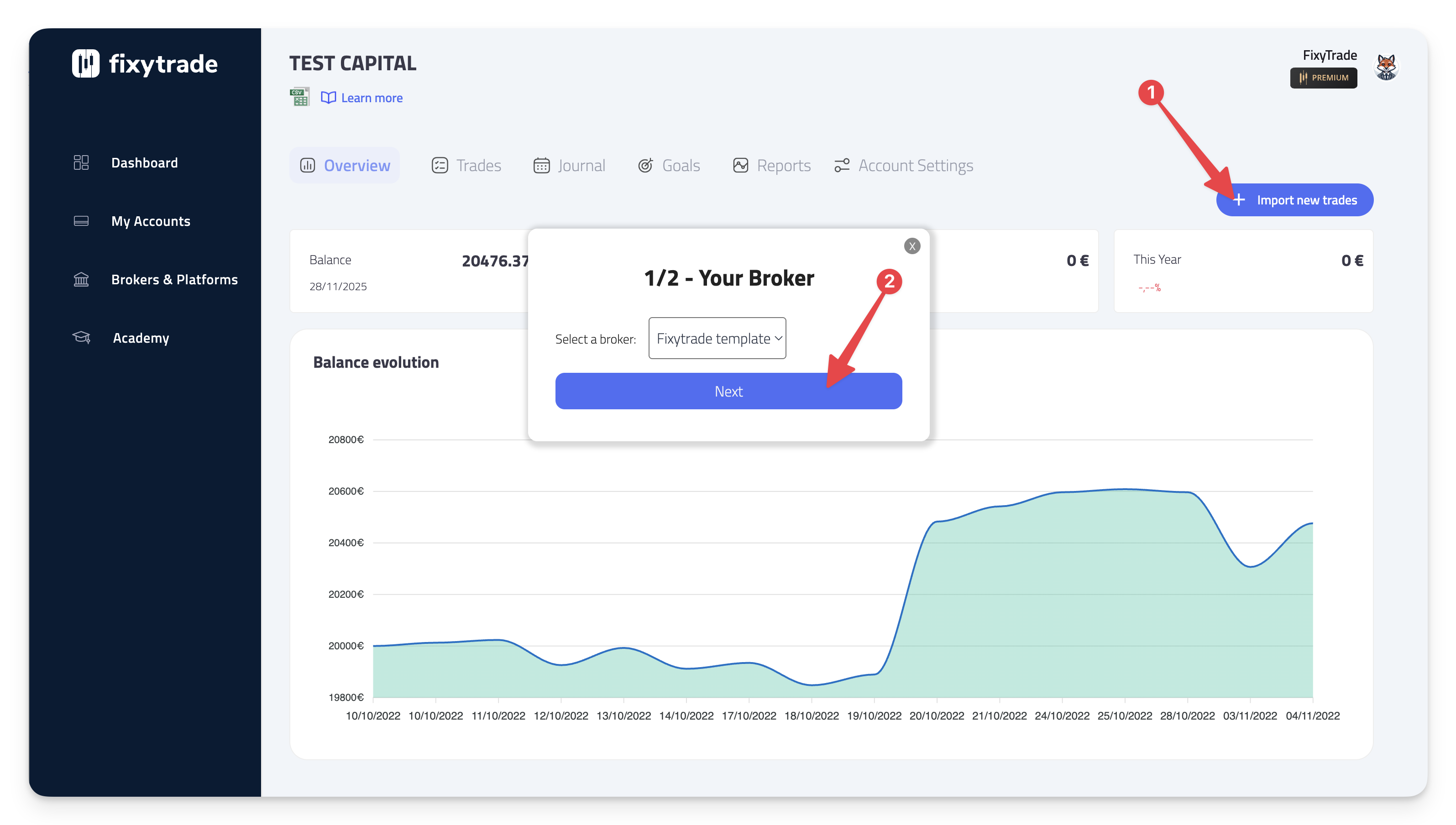 You will then just have to add the new file containing all your trades. FixyTrade will automatically add your new trades to your account.