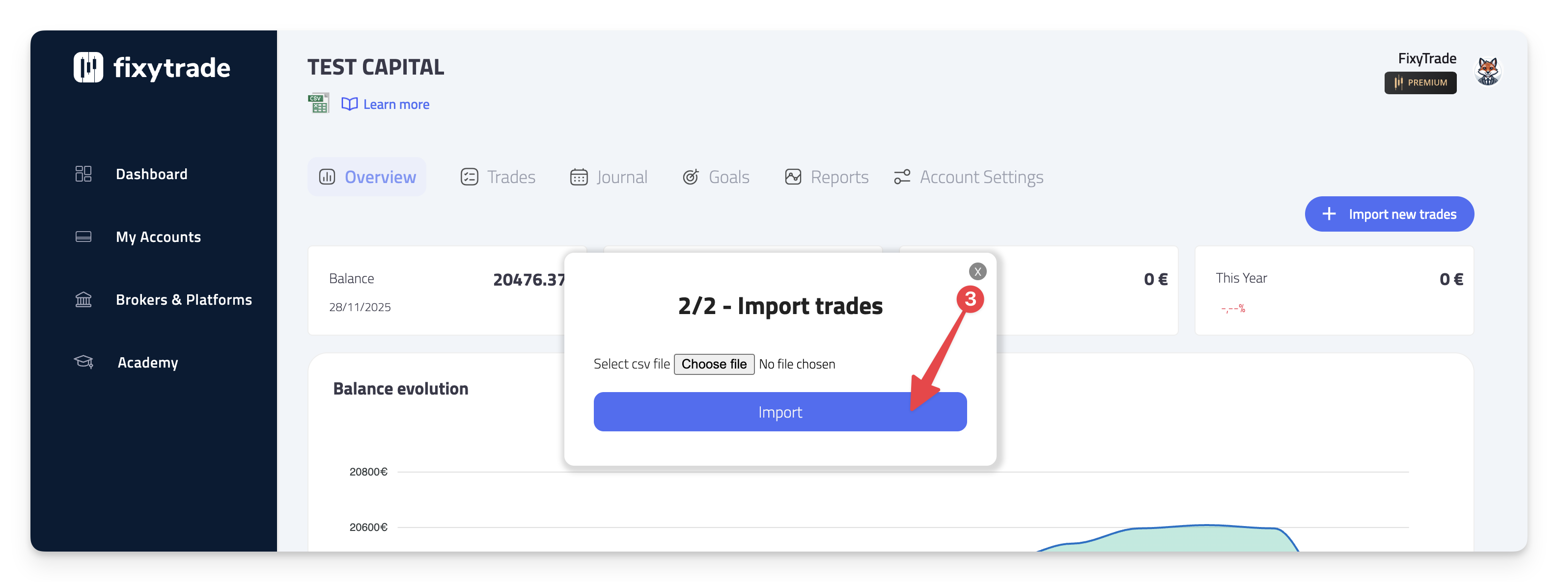 Once you have added your trades and saved your file, it is time to import it into FixyTrade.