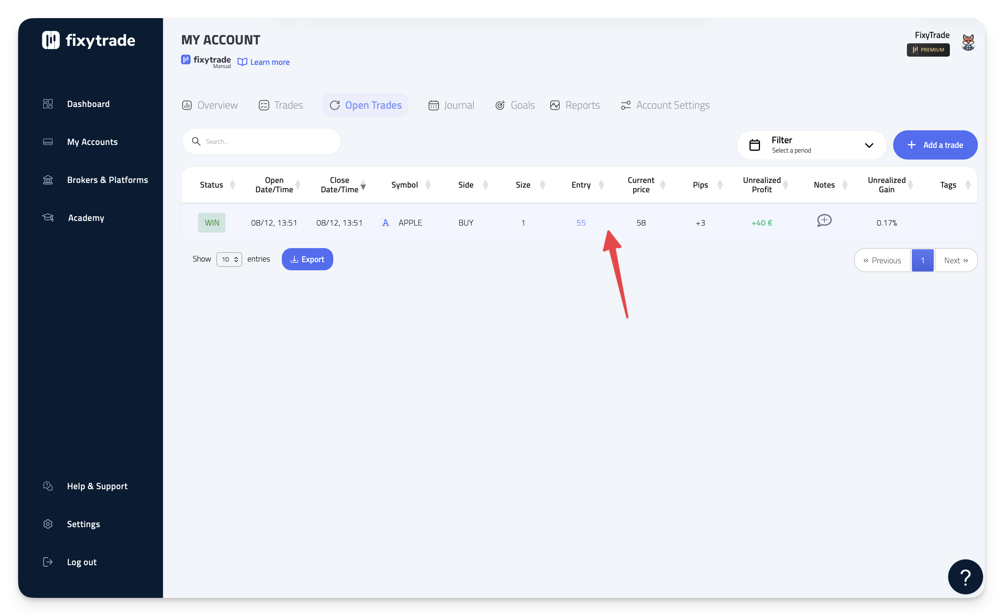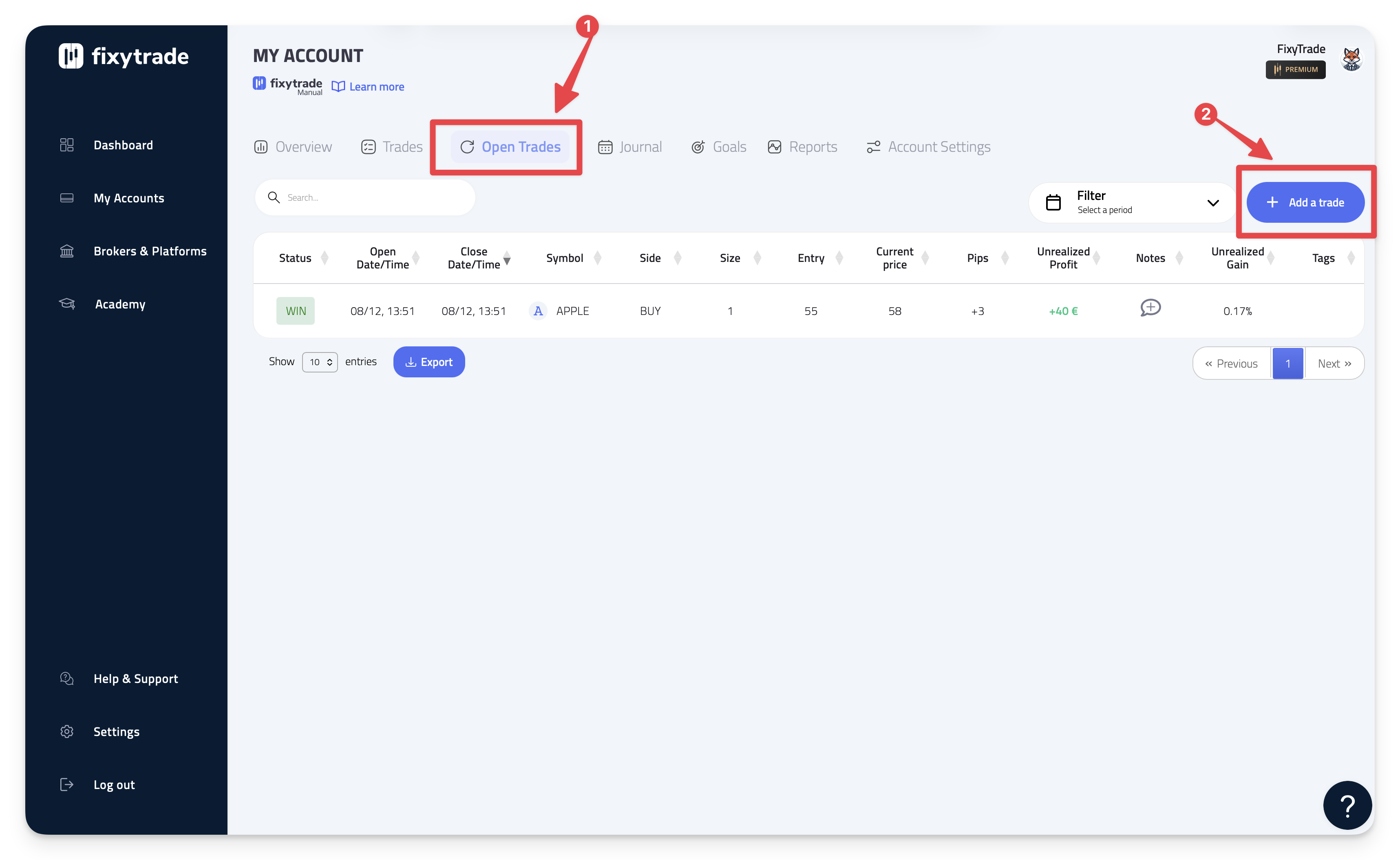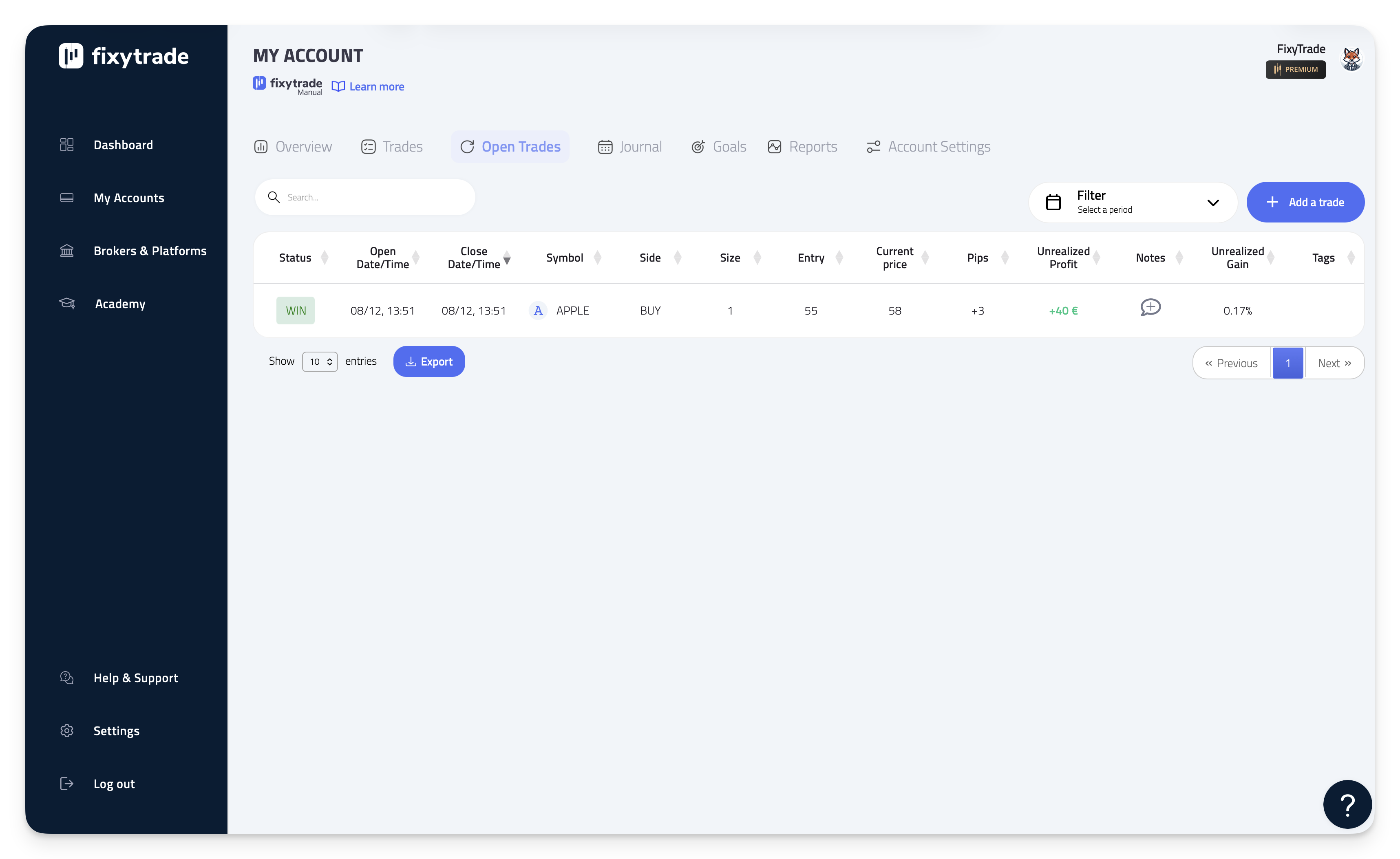 In this article, we will look at how to add an open trade, how to turn an open trade into a closed trade, and how to use your open trade list.