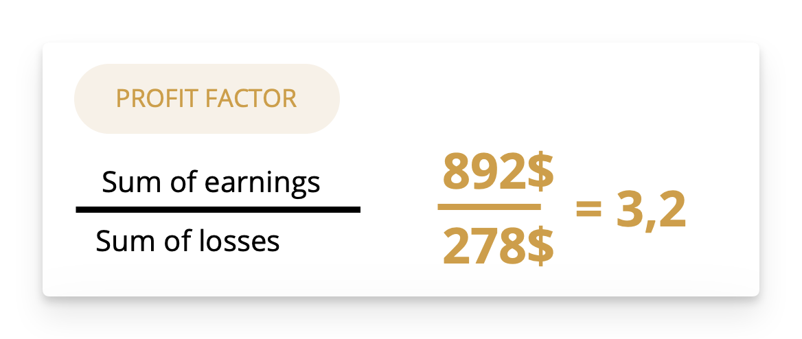 Once you have calculated this first criterion, we simply move on to the second criterion which is the profit factor. The Profit Factor is an index of the quality of your trading. It will evaluate the relationship between the risks you have taken and the results you have obtained.