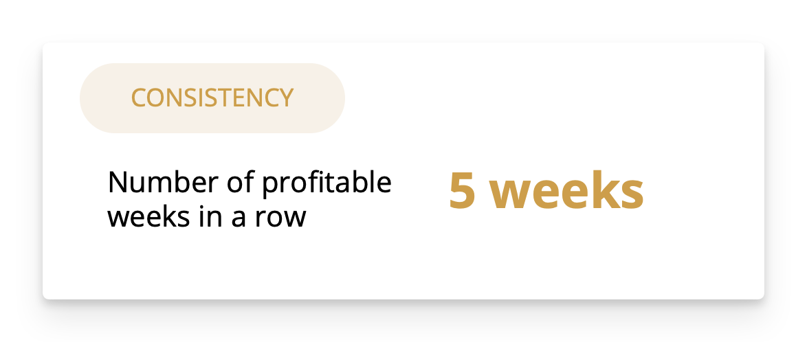 Then finally, you simply look at the number of weeks in a row that you are profitable.
