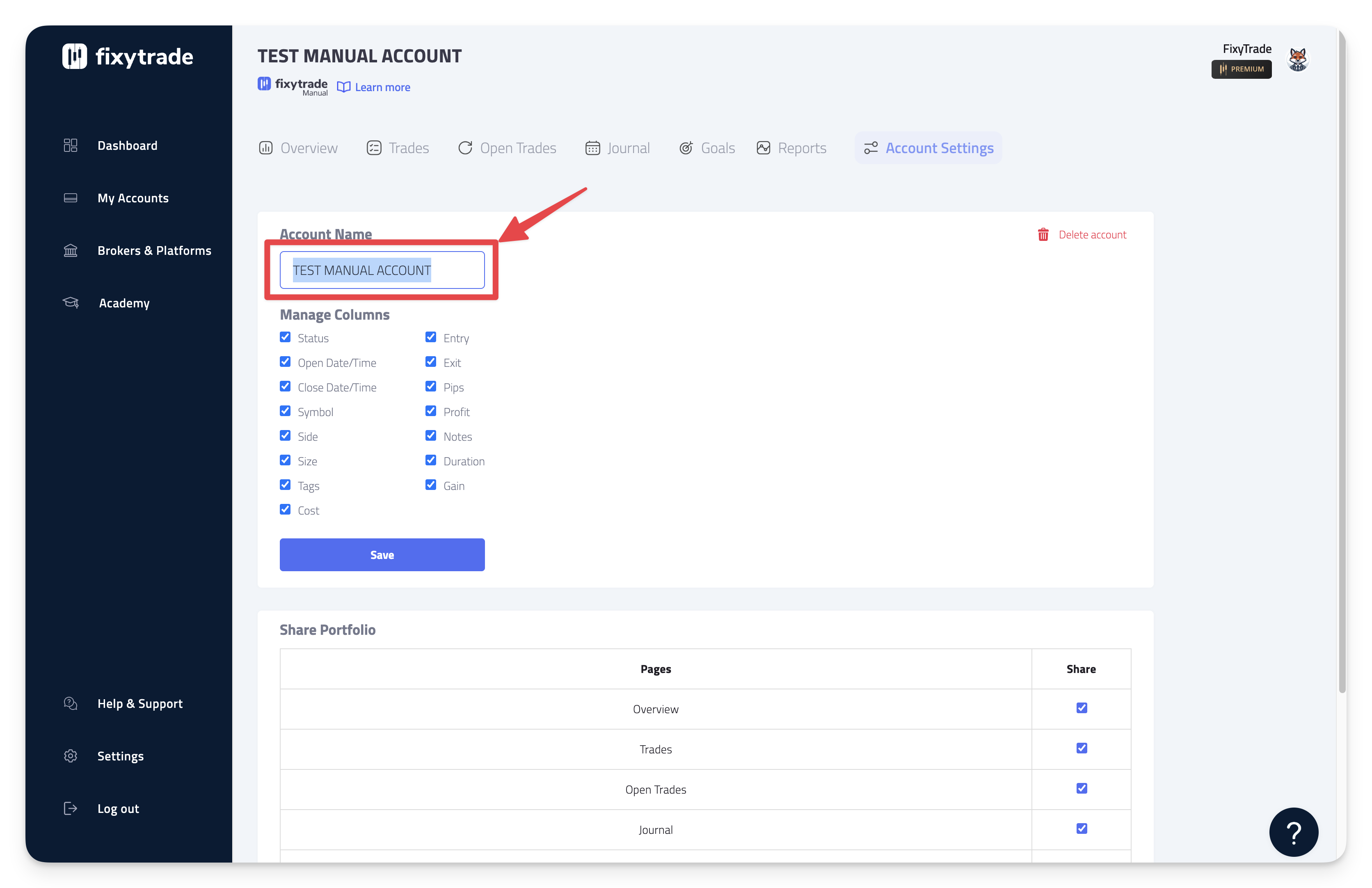 Step 4: Change the name of your trading account in the "Account Name" field.