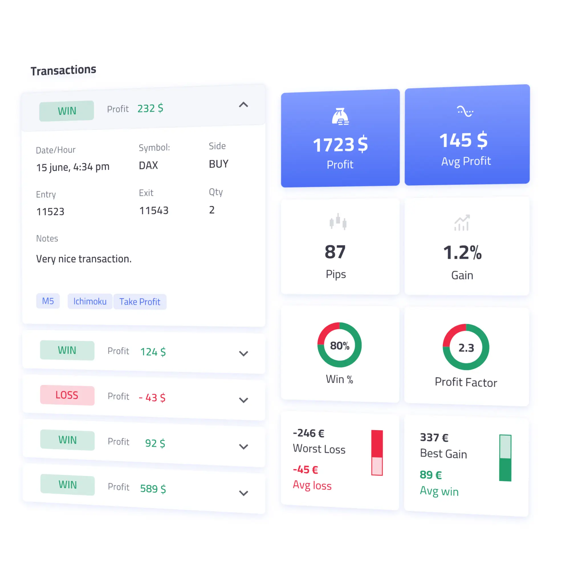 Depending on your broker, you will be able to automatically import and sync all your trades history. You can also add your trades by hand if you want.