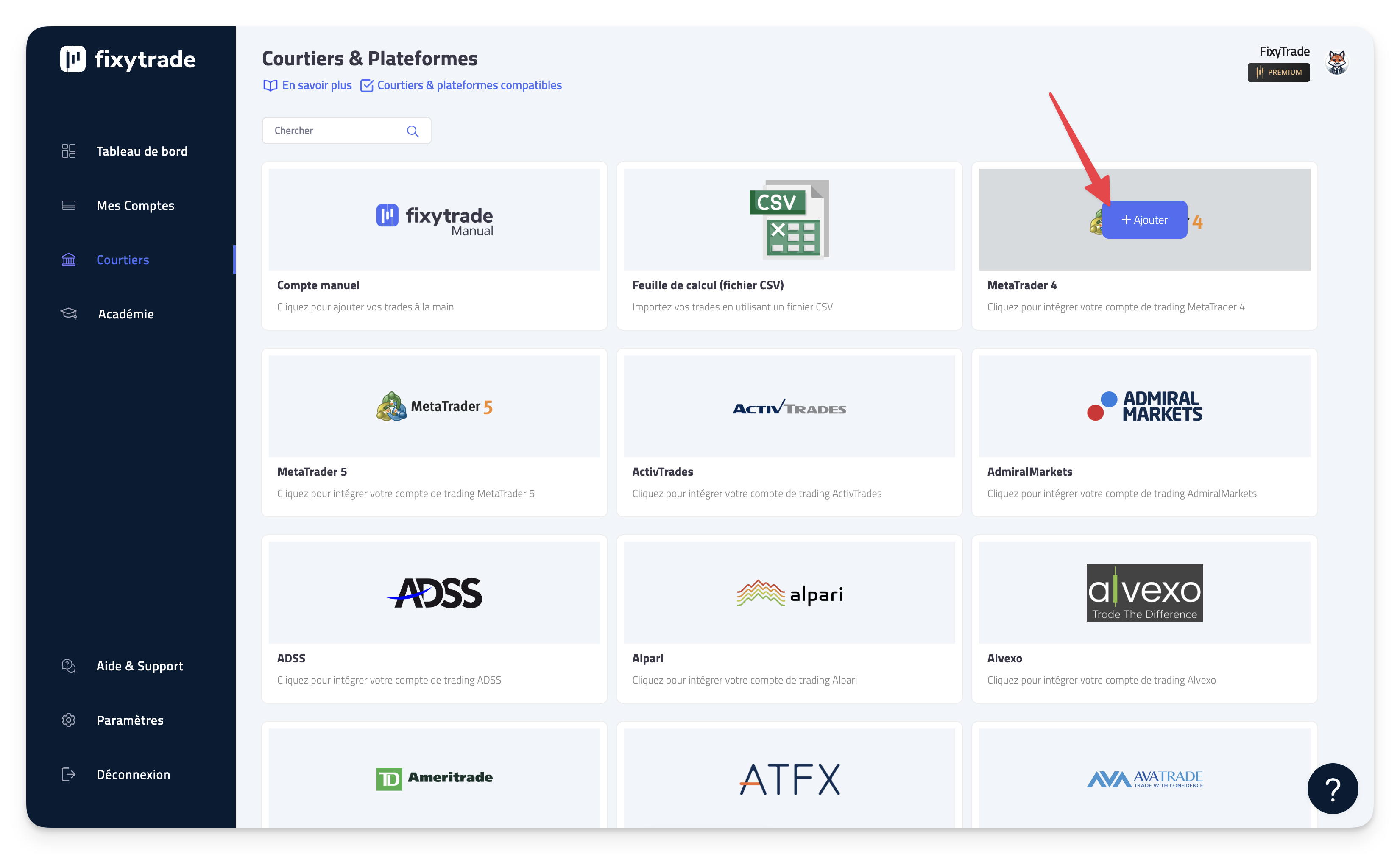 Quelques minutes suffisent pour ajouter un compte de trading dans FixyTrade. Suivez les étapes suivantes pour ajouter un compte :