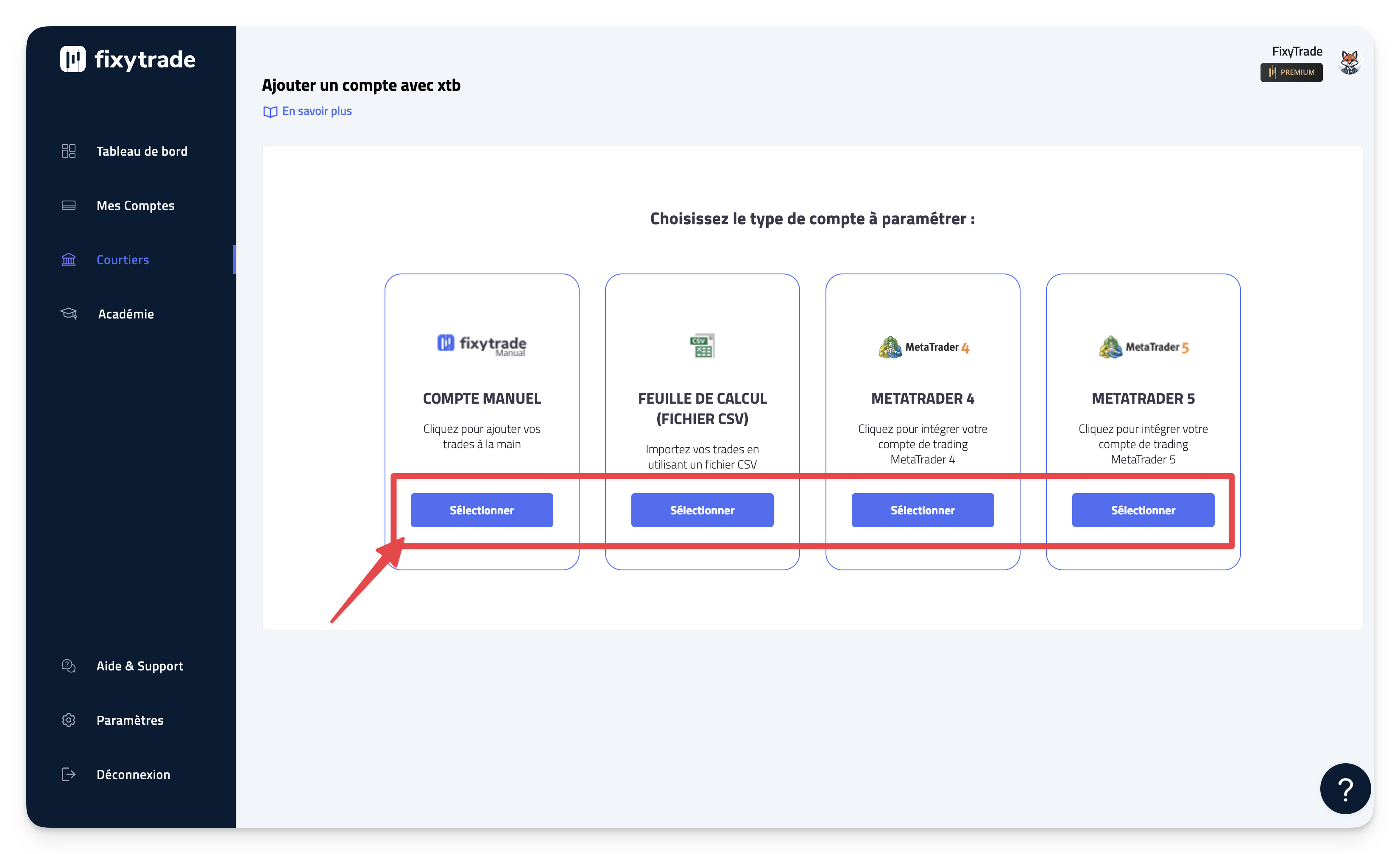 Après avoir vérifié le type de compte compatible, sélectionnez le sur la page des courtiers & plateformes.