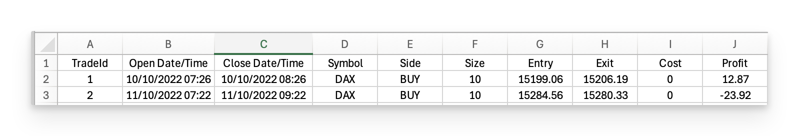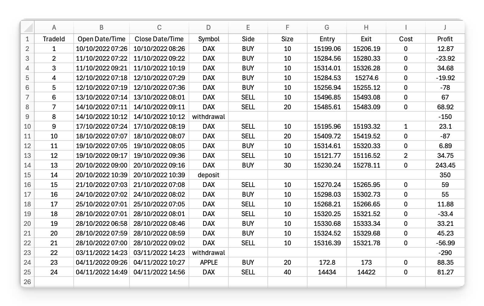 Ajoutez vos trades en remplaçant les informations du fichier par les vôtres et en respectant la structure des colonnes du fichier.