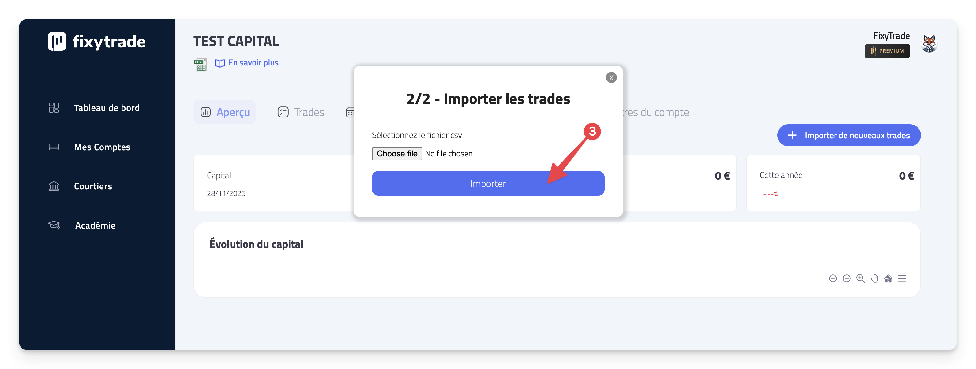 Cliquez sur Importer de nouveaux trades, puis choisissez le fichier.